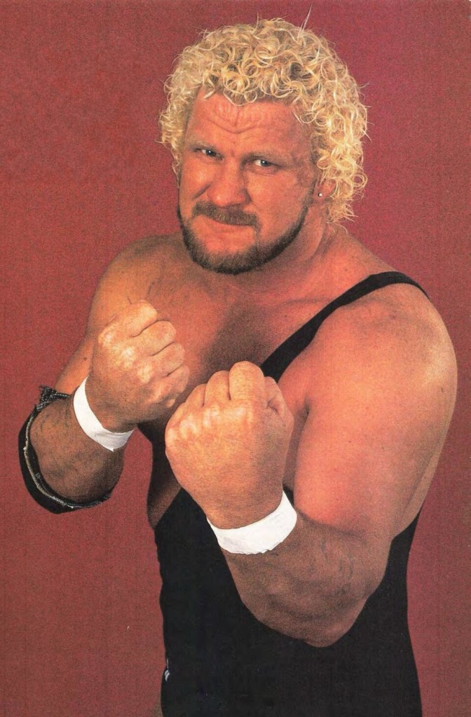 Hulk Hogan def. DQ took down David Schultz in 7:40. Hogan wasted no time, immediately kicking the shit out of Schultz. I’ve always loved David Schultz. He’s a solid 8.5 on the sleaze scale, takes wonderful ass beatings, and works in a way that makes him come off relentless, like a fucking pitbull. He opened up Hogan by mauling him with punches and stomps. Jesus, just looking at the two within proximity of each other, one looks like someone you would proudly introduce to your mom, and the other looks like he’d come screeching up to the house in a Cougar with a scorching case of Herpes. Hogan had had enough and eventually made a comeback, punching and biting Schultz until his frizzy, damaged blonde locks were a crimson red. Hogan already knew how to work the crowds to make everything mean more, and they were going apeshit watching this Adonis beat the everloving shit out of this disgusting redneck. Saito got on the atpon, and Hogan picked him up by the throat like he was the size of fucking Tajiri, but the heels overwhelmed Hogan for the DQ and to set up a series of handicap matches around the loop. This was short, but all action, and the crowd was living and dying by it. Hogan was good here, but Schultz was an excellent foil. ***1/4