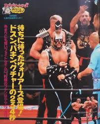 After watching the first Triple Crown match yesterday, I thought it would be fun to do the same with the tag titles. The match was your typical Road Warriors Japanese spectacle match—many power moves, no-selling, and some long restholds by the Roadies. Hawk sold more than Animal, but also worked in his traditional no-sell of a piledriver spot when Jumbo gave him the move. If Animal took a move and got covered, he usually responded by giving the press slam kick out with his big barrel chest. Yatsu and Jumbo had a stretch where they worked over Hawk, including with a few of their signature double-team moves. Hawk was still doing a drunk sell thing in this era, but it was effective. The difference between Hawk and Animal working a hold and the Japanese is that they used it mainly as a chance to rest instead of constantly moving on the ground. They did a spot where it looked like Hawk would come off the top on Yatsu’s leg, but he fell off the top and punched him instead. Not the smoothest of times. Jumbo got the hot tag and lit Animal up with a clothesline for a near fall, but Hawk went batshit and threw the ref over the top like an actual sack of shit. He hit Jumbo with a clothesline from the top for the win, but the original ref DQ’d LOD for Hawk assaulting him. This is what happens when one of your biggest teams refuses to do jobs – You have a DQ Dustyish finish in a title vs. title match. This was fun sometimes, and the crowd was into it, but it was mostly okay at best with the Warriors’ limitations. *1/2