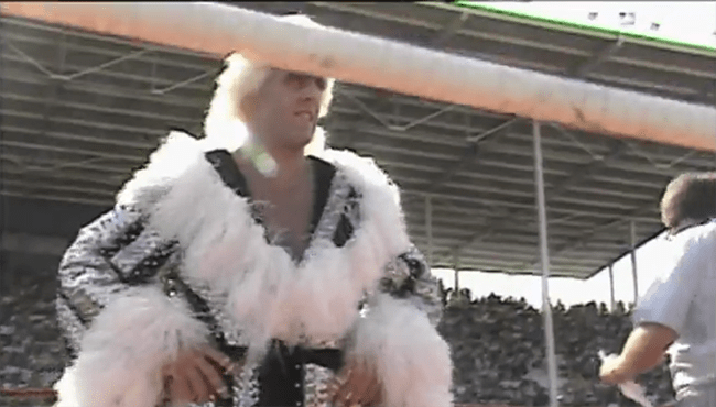 NWA World Heavyweight Title: Ric Flair (C) vs. Dusty Rhodes ended in a Double DQ at 15:20. This was a very typical Flair/Rhodes match – good with a horrible finish. They certainly had their spots they would hit in these matches, and they checked all the boxes except juice. There was a ref bump, and he saw Dusty backdrop Flair out of the ring, and the ref DQ’d Dusty when he got to his feet. **3/4